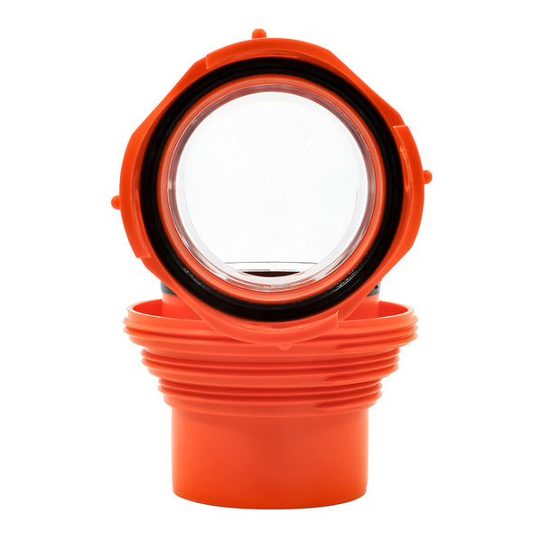 - The elbow is clear so you can see when your sewer hose has finished draining