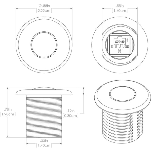 - Width: 0.88" (2.22cm)